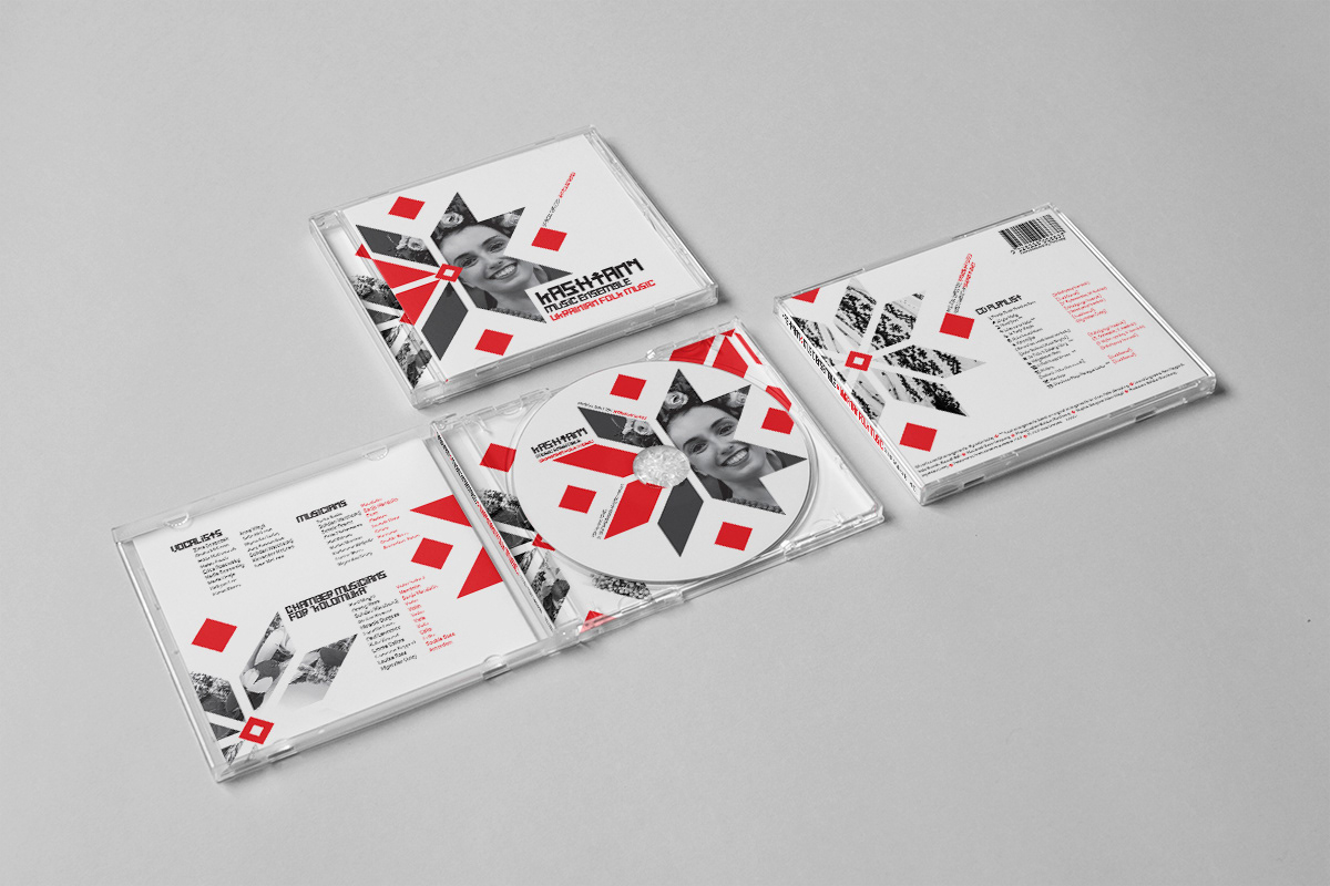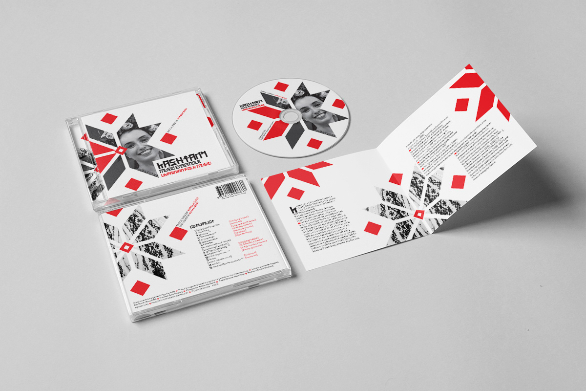 CD Artwork for a Ukrainian Folk Musical Director. The graphic star and creative white space represents the patterns commonly used in Ukrainian folk music and are often seen on the costumes. The Headline font is actually called "Ukraine" and has that playful and serious nature that represents the type of music. The clients where overjoyed with the results.